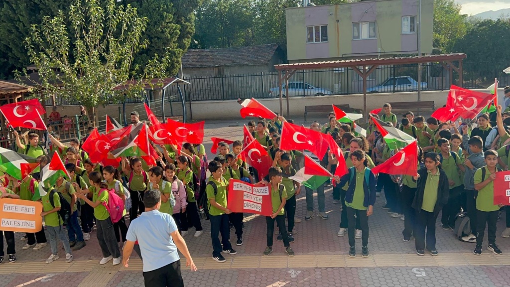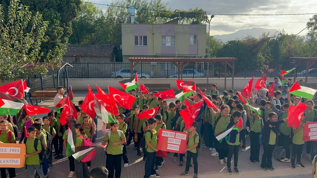 Okulumuzda Gazze'ye yapılan saldırıları kınamak ve öğrencilerimizde farkındalık oluşturmak için yapılan etkinliğe İlçe Milli Eğitim Müdürümüz Sayın Durmuş SAĞLAM'a ,Şube Müdürümüz sayın Bilal YALÇIN'a etkinliğe katılımları nedeniyle teşekkür ederiz.